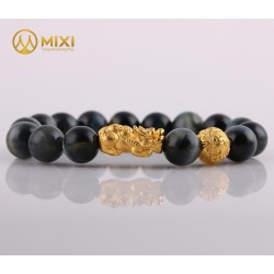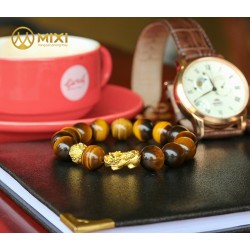 - Ý nghĩa: Vòng tay đá mắt hổ kết hợp tỳ hưu vàng 24k cầu tài lộc, độ bình an,..
