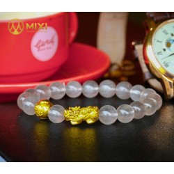 - Ý nghĩa: Vòng tay đá thạch anh tóc trắng kết hợp tỳ hưu vàng 24k cầu t..