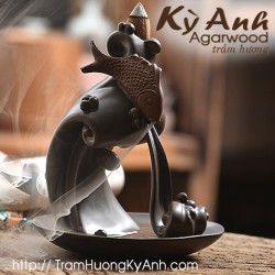 Trầm Hương Kỳ Anh - Trầm hương tự nhiên cam kết đúng chất lượng. Đế cắm nhang phun khói hình cá phun nước. Chất li..