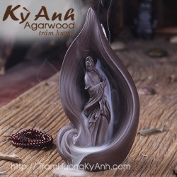 Trầm Hương Kỳ Anh - Trầm hương tự nhiên cam kết đúng chất lượng. Đế cắm nhang phun khói hình chú tiểu. Chất li..