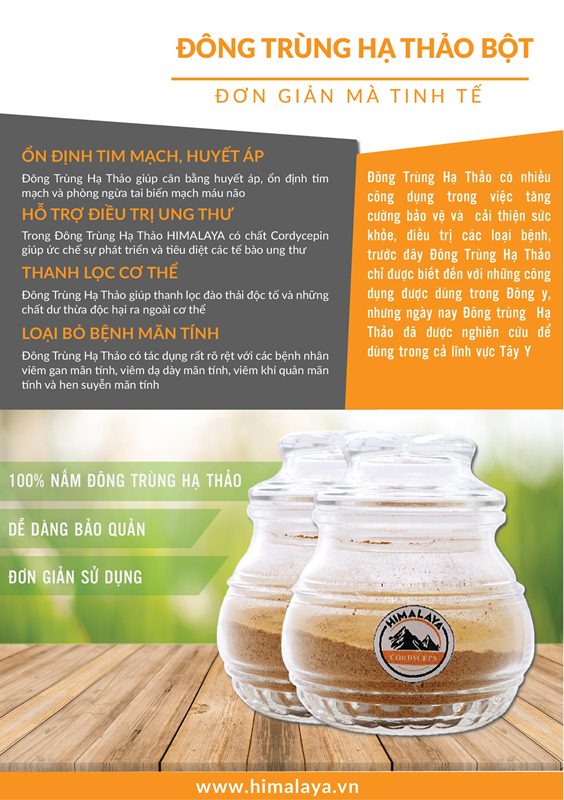 – Bột Đông trùng hạ thảo có tác dụng bồi bổ và tăng cường sức khỏe.